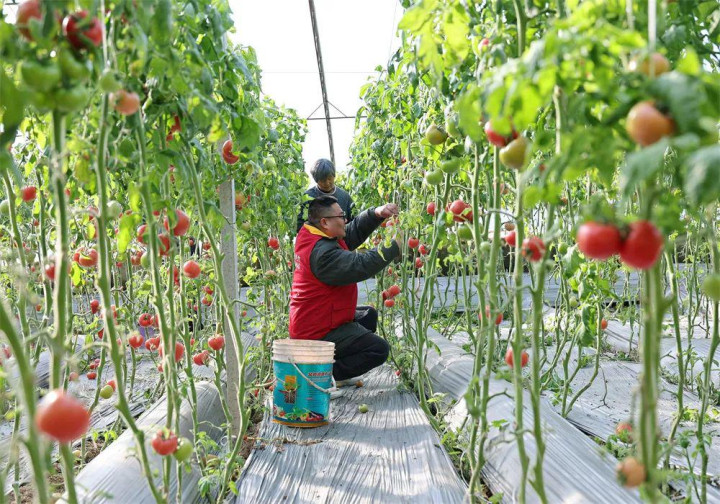 走出于光亮家的大棚,村内一排排整齐的大棚,仿佛白色的海洋,一辆辆满载着红彤彤西红柿的货车,行驶在乡间道路上,朝着热闹的春节市集,朝着红红火火的好日子驶去。
