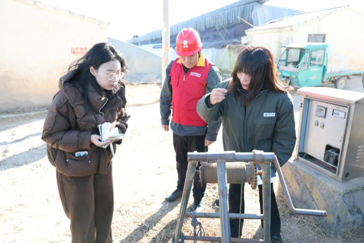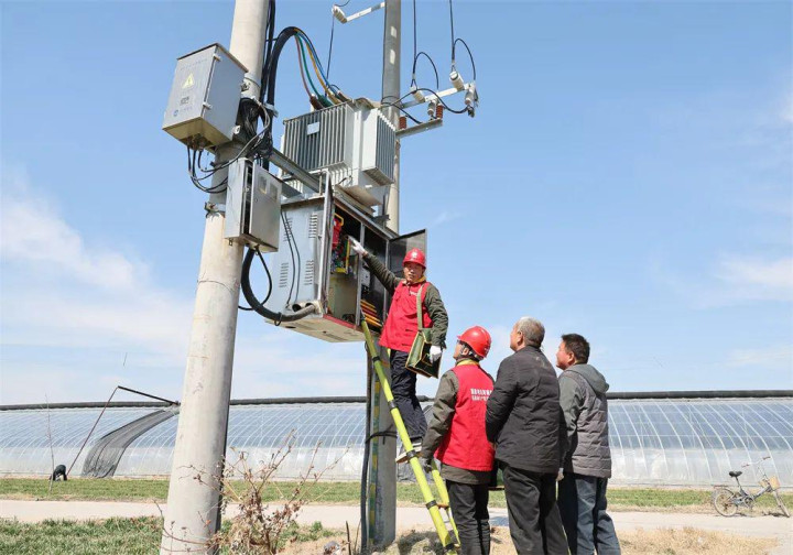 供电员工帮助大棚种植户检查供电设施运行情况。